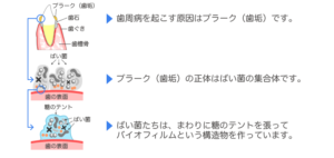 厚労省のWebページからの引用となりますが、歯周病の進んでしまう原因は、プラークと言われるものです。
