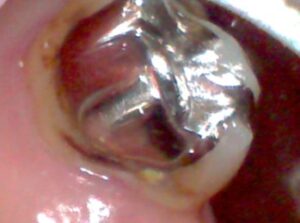 銀歯がしみるとのことで来院された方の写真ですが一見何でもないように見えますが・・・